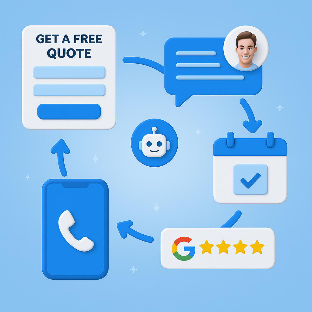 The CRM auto-sends them a text: “Hey {{name}}, thanks for reaching out — want to schedule a quick estimate?”